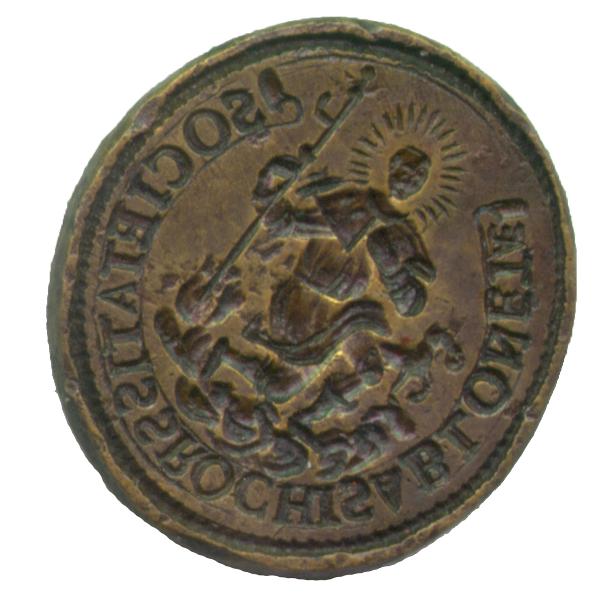 Dritto: San Rocco viandante con mantello, bastone e cane ai piedi. Rovescio: