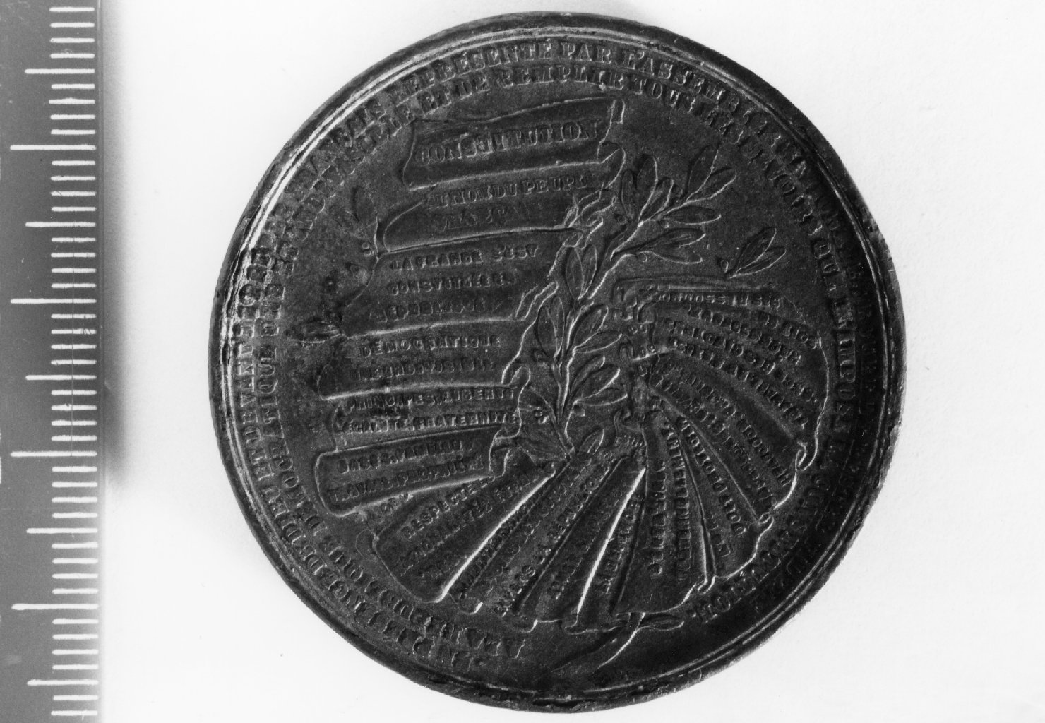 Dritto: Busto di Luigi Napoleone Bonaparte a d. Rovescio: Foglio rappresentante la Carta Costituzionale posta su alloro