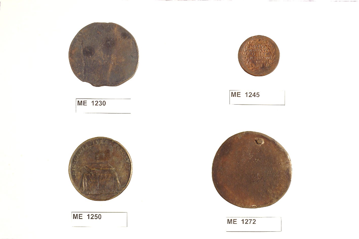 Dritto: Testa a d. di Angelo Gambiglioni. Rovescio: Libro chiuso sopra tavolino coperto da tappeto