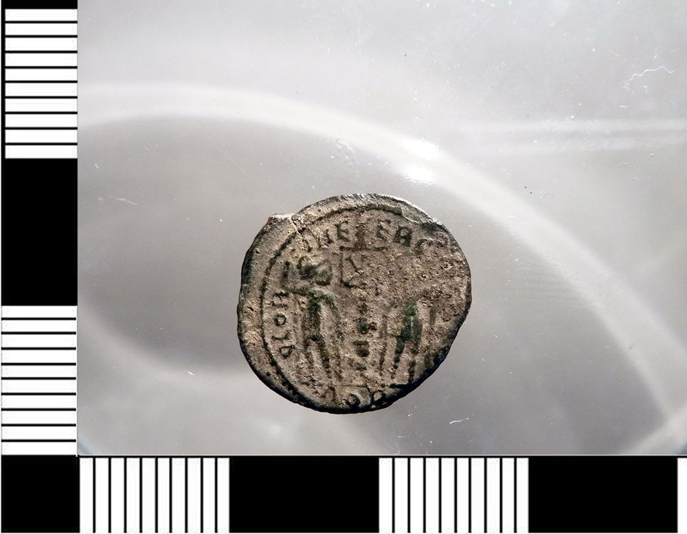 Dritto: Busto diademato, laureato, drappeggiato e corazzato di Costanzo II a d., bordo perlinato. Rovescio: Due soldati, stanti frontalmente, ciascuno recante una lancia e con una mano appoggiata a uno scudo; tra di loro, un'insegna, bordo perlinato