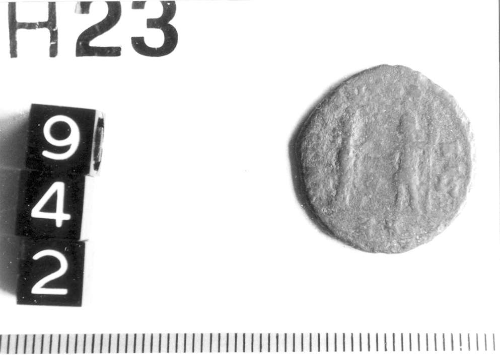 Dritto: Busto radiato e corazzato a destra (B Bastien 1992-1994). Rovescio: Una personificazione femminile, rivolta a destra, porge una corona all' Imperatore rivolto a sinistra in abito militare con uno scettro lungo (lancia ?)