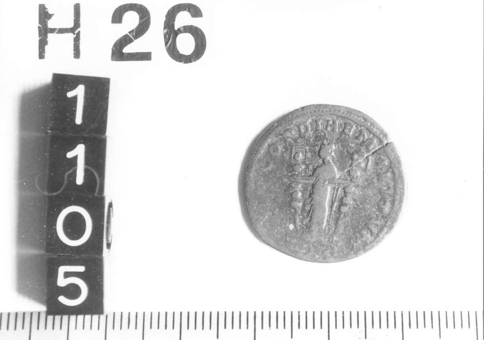Dritto: Severina diademata, drappeggiata con busto a destra su crescente. Rovescio: Concordia stante a sinistra tiene due insegne