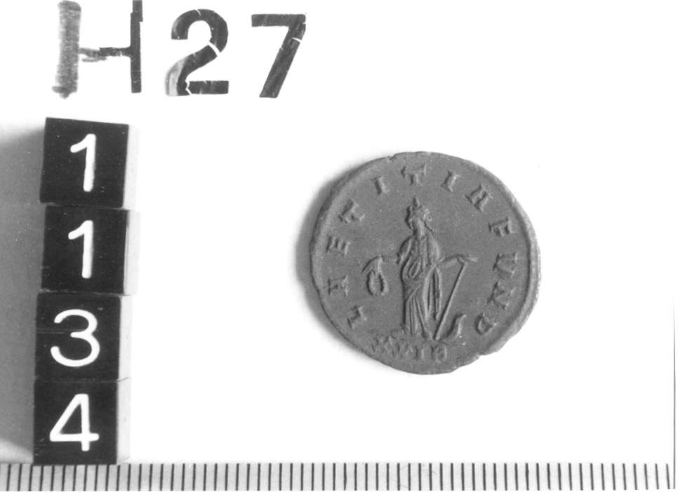 Dritto: Tacito, con corona radiata, busto a destra con paludamentum e corazza. Rovescio: Laetitia in piedi a sinistra tiene una corona nella mano destra e un ancora nella sinistra