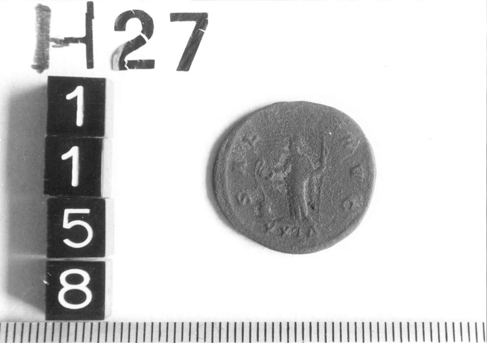 Dritto: Tacito, con corona radiata, busto a destra con paludamentum e corazza. Rovescio: Salus in piedi a sinistra nutre un serpente attorcigliato ad un'ara e tiene un lungo scettro nella mano sinistra