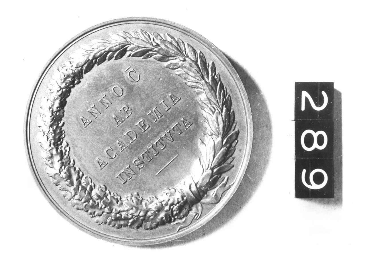 Dritto: Busto a destra con parrucchino arricciato sulla tempia e l'orecchio e codino trattenuto da nastro annodato sul collo; giacca apeta e cravatta annodata. Rovescio: Iscrizione in 4 righe entro corona di rovere e alloro annodata in basso