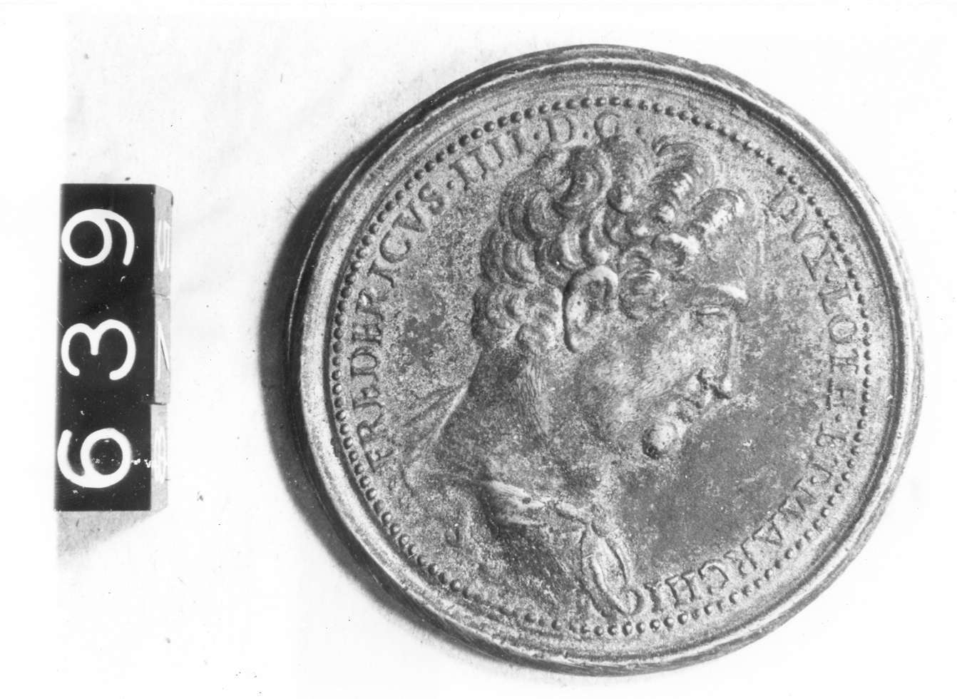 Dritto: Busto a destra con drappeggio all'antica trattenuto sulla spalla; faccia glabra, capelli corti. Rovescio: Busto velato a destra