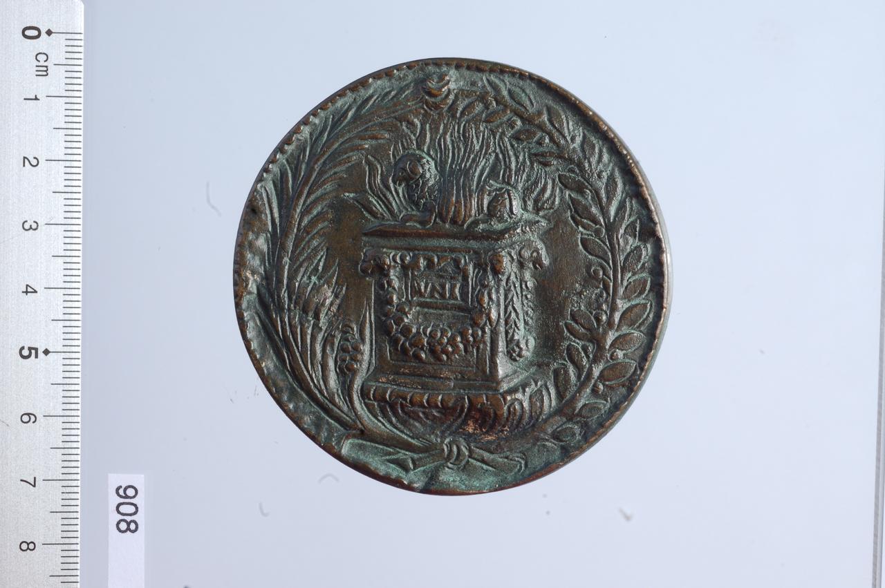 Dritto: Busto di Alberto Pio di profilo a destra con cappello e la collana dell'ordine di San Michele; bordo prlinato. Rovescio: Un altare su cui arde una fiamma; intorno corona d'alloro e ulivo