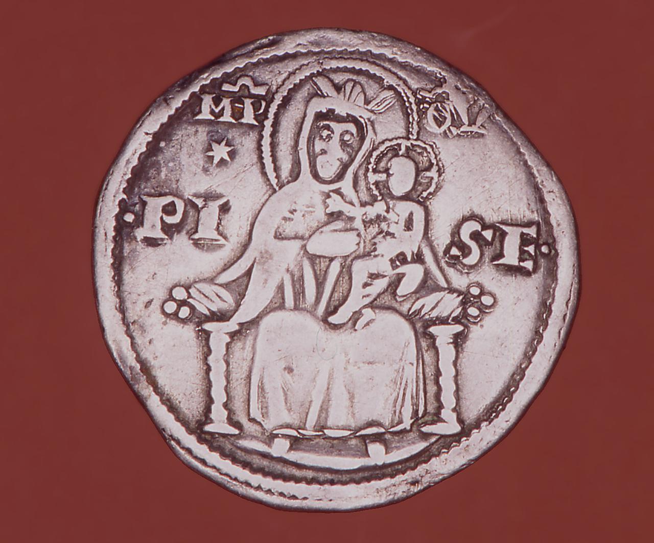 Dritto: Stemma dell'Impero: Aquila con corona. iscrizione sul bordo. Rovescio: Madonna con Bambino in trono, bordo cordonato, iscrizione a metà