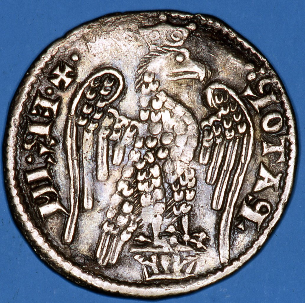 Dritto: stemma dell'impero; aquila su capitello con corona. Bordo perlato. iscrizione. Rovescio: Al centro Madonna con Bambino in trono con corona; velo; stella, simbolo di zecchiere. iscrizione a s e d. del trono. Bordo perlato