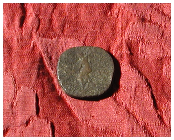 Dritto: Testa laureata di Marco Aurelio (?) a d. Contorno non visibile. Rovescio: Figura seduta rivolta a s. (probabilmente Giove in trono, seduto verso s., con vittoria nella mano s. e scettro nella mano d.). Contorno non visibile