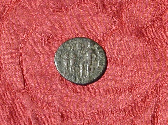 Dritto: busto di profilo, diademato e drappeggiato (e corazzato ?), di CostanzoII a s.; c. non leggibile. Rovescio: l'imperatore, a testa nuda ed in abiti militari, stante a s., tiene nella mano d. uno stendardo con il Chi-Rho e poggia la mano s. sopra uno scudo; davanti a lui due nemici sconfitti, affiancati, con copricapo a punta; c.perlinato (appena leggibile)