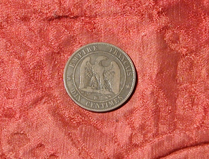 Dritto: Testa nuda di Napoleone III di profilo a sinistra, in contorno perlinato. Rovescio: Aquila ad ali spiegate, con capo a d. che tiene saette negli artigli e sotto B in cerchio perlinato