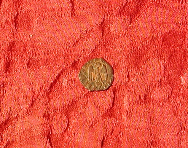 Dritto: P ornata in palo accostata da "lo" a sinistra, senza cerchio. Rovescio: Aquila coronata ad ali spiegate su capitello, senza cerchio
