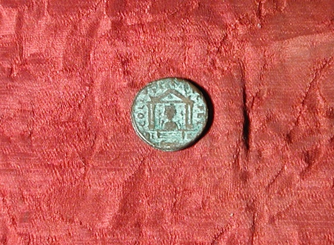 Dritto: testa laureata di profilo rivolta a destra. Rovescio: edicola con colonne laterali