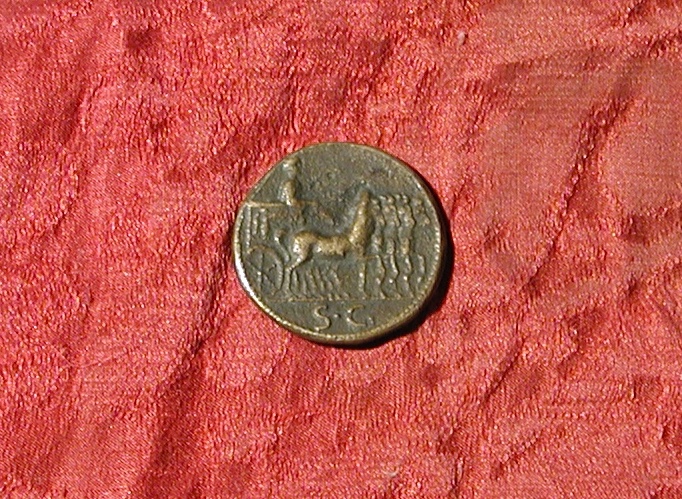 Dritto: testa laureata, di profilo, di Tito a d.; c. perlinato. Rovescio: l'imperatore su quadriga trionfale andante a d.; c. perlinato