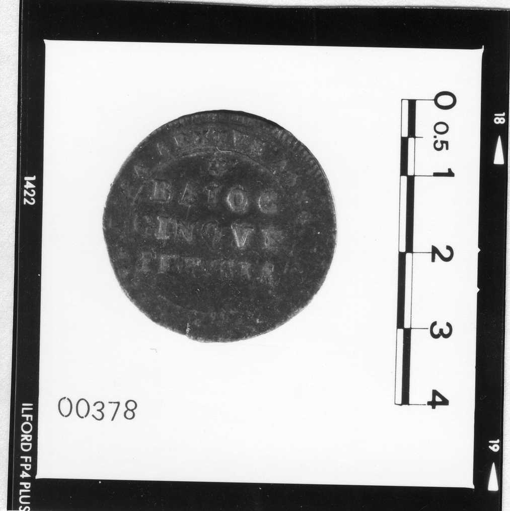 Dritto: moneta da 5 baiocchi. Rovescio: