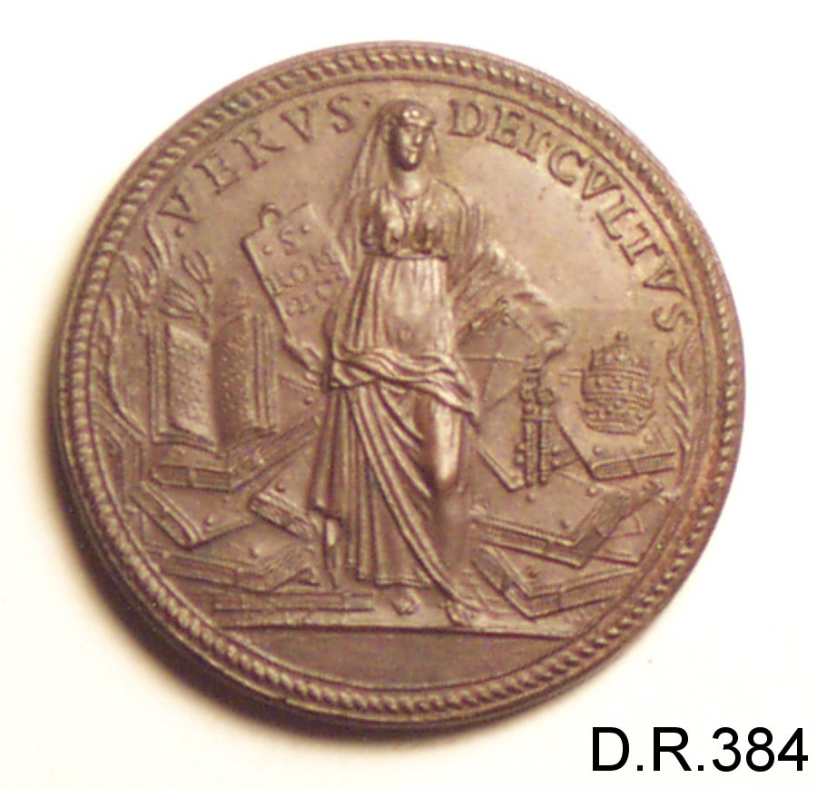 Dritto: busto di papa Gregorio XIII con piviale; capo nudo. Rovescio: la religione, in figura muliebre stante, con le chiavi e un libronellamano sinistra, e nella destra una tabella con con su scritto: s. rom.ec