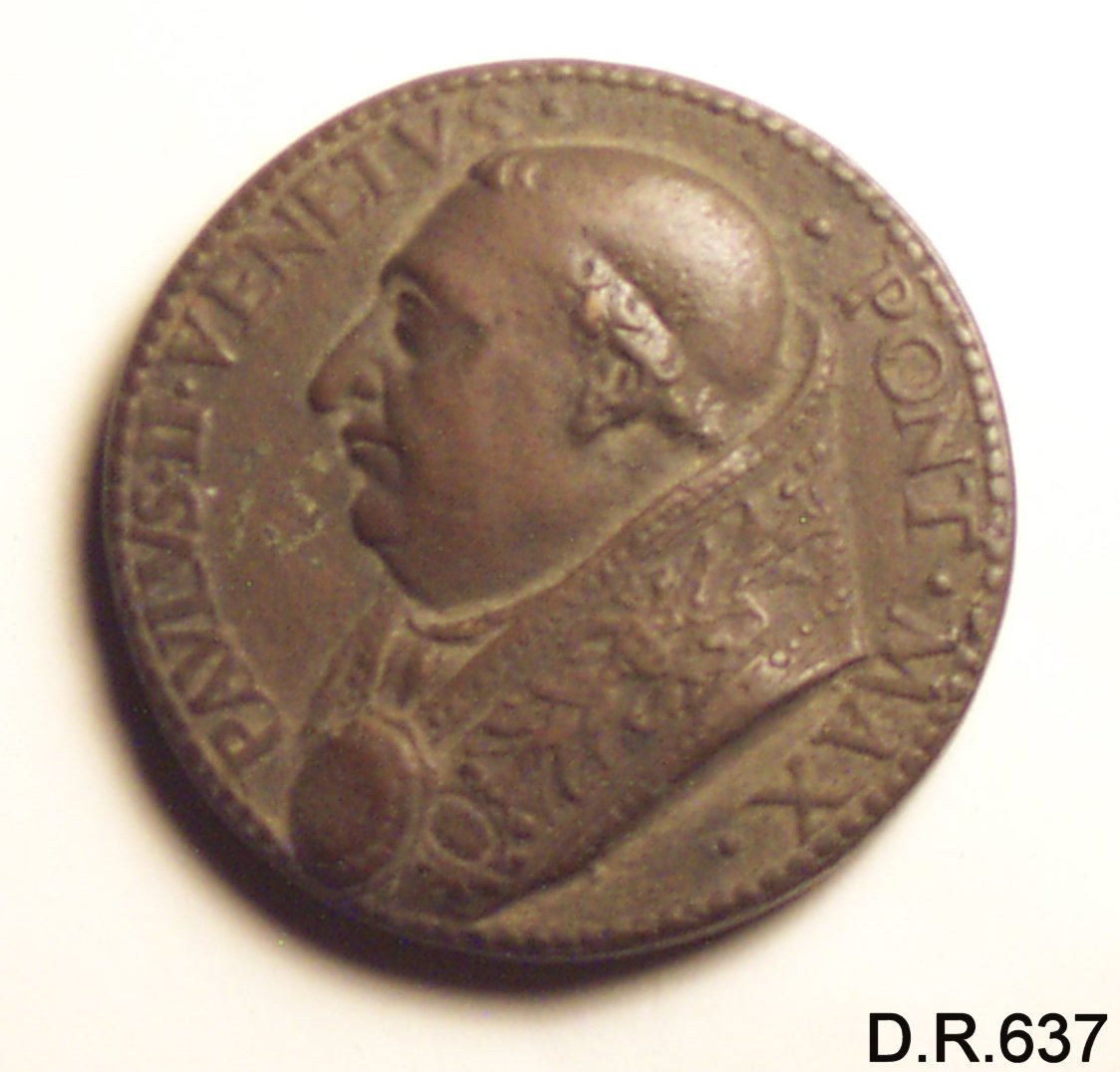 Dritto: busto di Paolo II volto a sinistra con piviale e capo nudo. Rovescio: gli apostoli pietro e paolo conducono il gregge verso l'agnello pasquale
