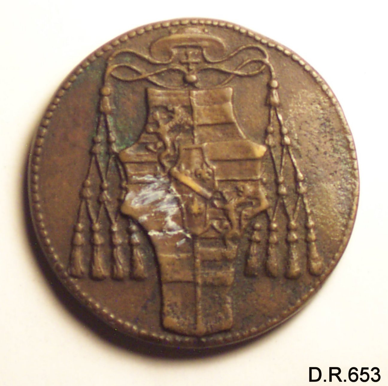 Dritto: busto di Guglielmo D'estouteville, arcivescovo di rouen nel 1453,vescovonel 1461, volto a destra e capo nudo. Rovescio: arme dei d'estouville sormontata dal cappello cardinalizio