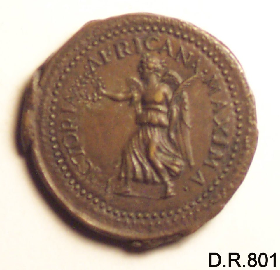 Dritto: Busto dell'imperatore Carlo V volto a destra, con berretto e barba. Rovescio: Vittoria procedente a sinistra, con palma nella mano sinistra ecoronad'alloro in quella destra