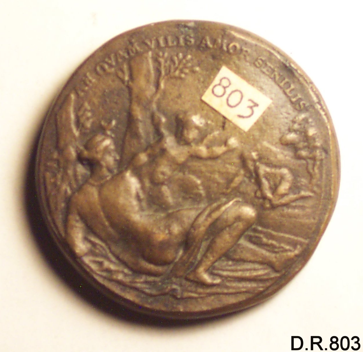 Dritto: Busto del generale Alberico Lodrone volto a sinistra, concorazza,mantello, capo nudo e barba. Rovescio: Venere sdraiata vista di schiena, con accanto Amore che le additaunvecchio, il quale avanza verso di lei trascinandosi sulle ginocchia