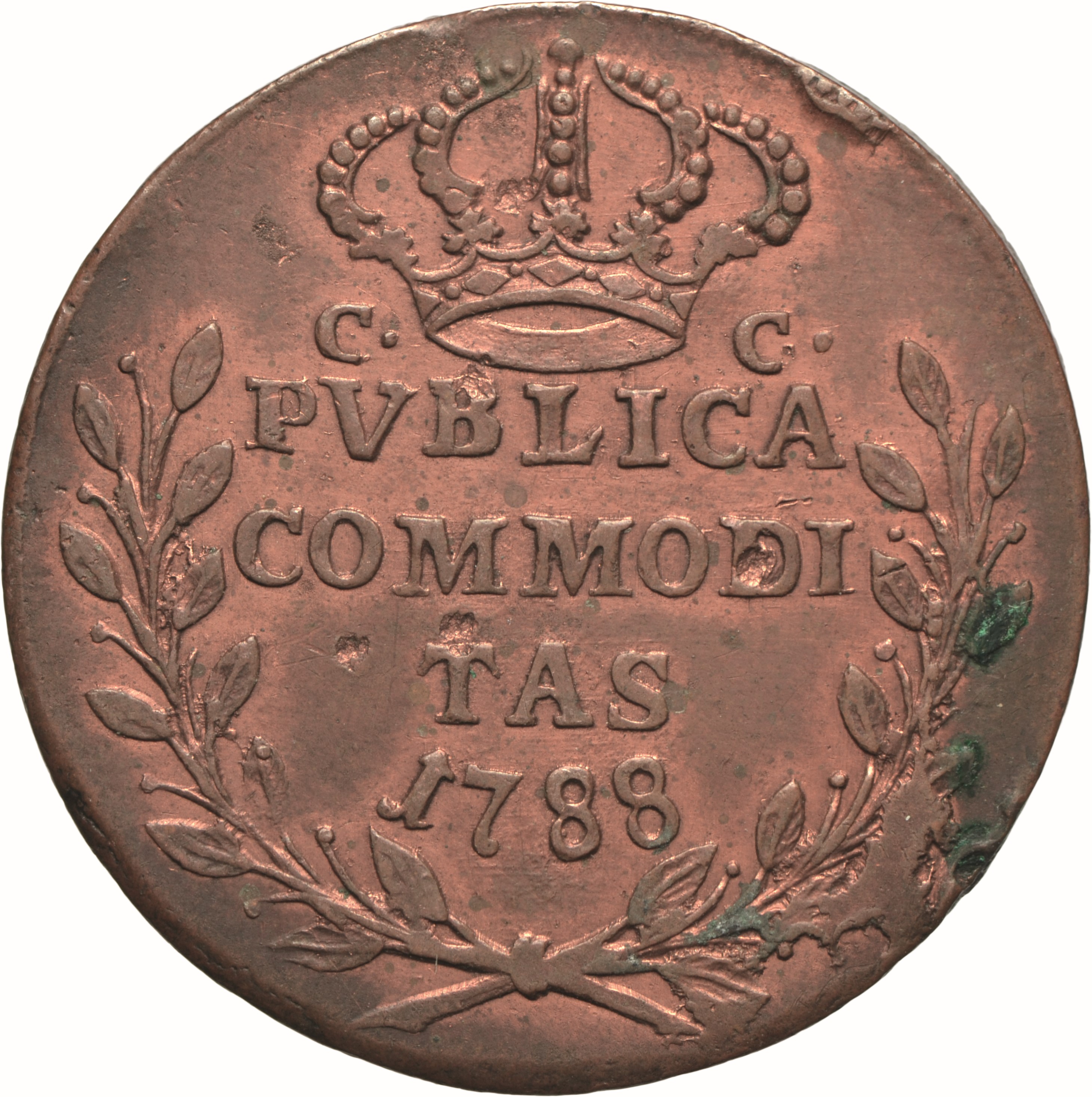 Dritto: Busto adulto del re volto a d., corazzato e a testa nuda con lunghi capelli sciolti; sotto, P. . Campo monetale delimitato da filetto dentellato. Rovescio: Tra due rami di alloro montanti ai lati: C ∙ (corona reale) C ∙ . Campo monetale delimitato da filetto dentellato (appena percettibile)
