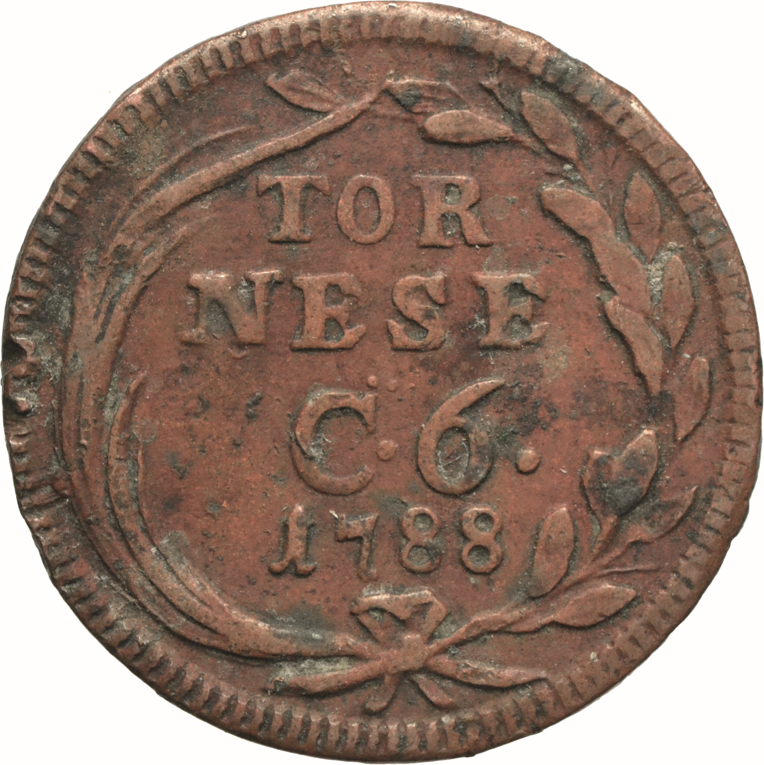Dritto: Testa nuda del re volta a destra, con lunghi capelli; sotto, P. . Campo monetale delimitato da filetto dentellato. Rovescio: Campo monetale delimitato da filetto dentellato. T/ liscio