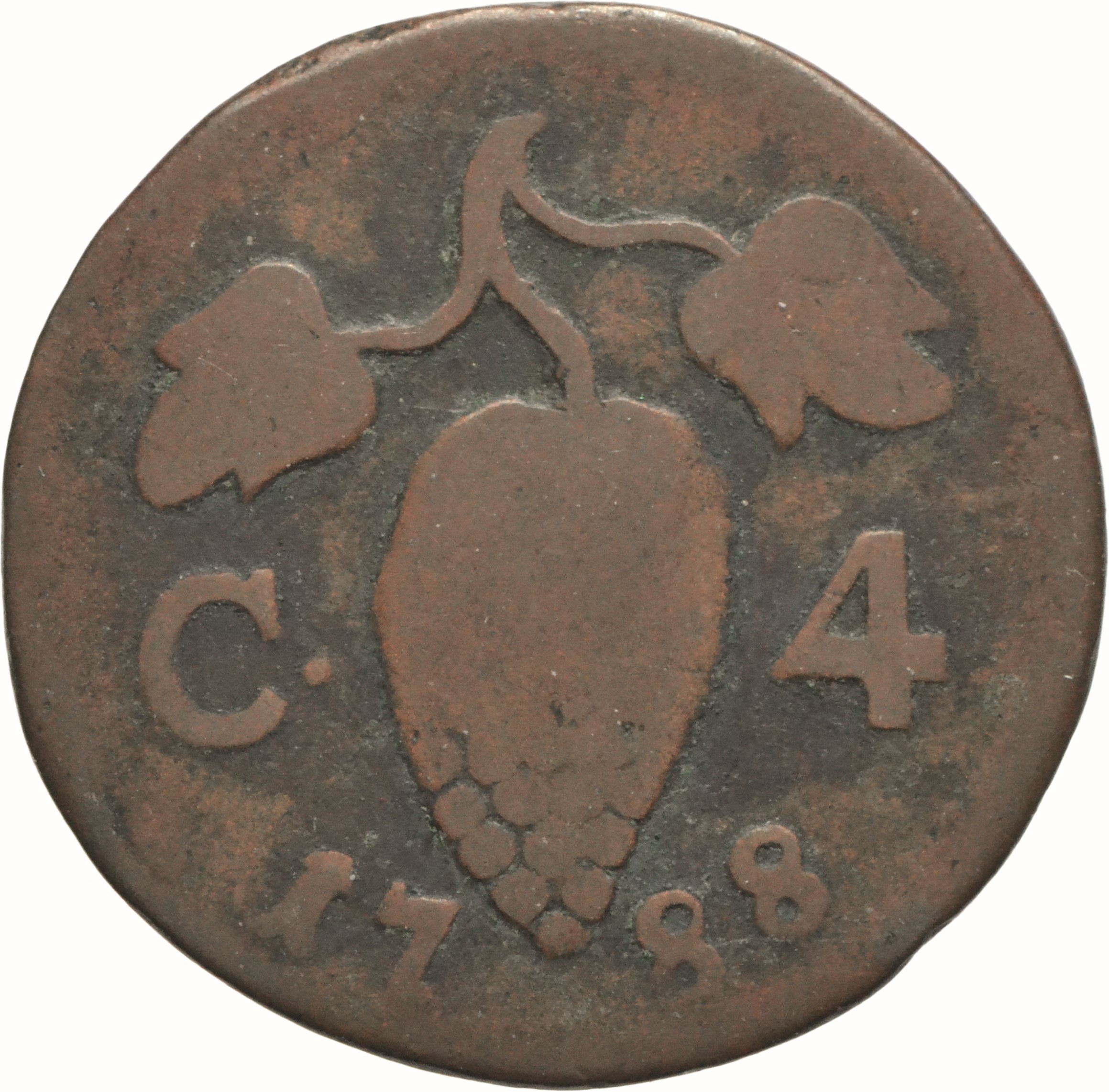 Dritto: Testa nuda del re volta a destra, con lunghi capelli; sotto, P. . Campo monetale delimitato da filetto dentellato. Rovescio: Grappolo d’uva con due foglie. Campo monetale delimitato da filetto dentellato. T/ liscio