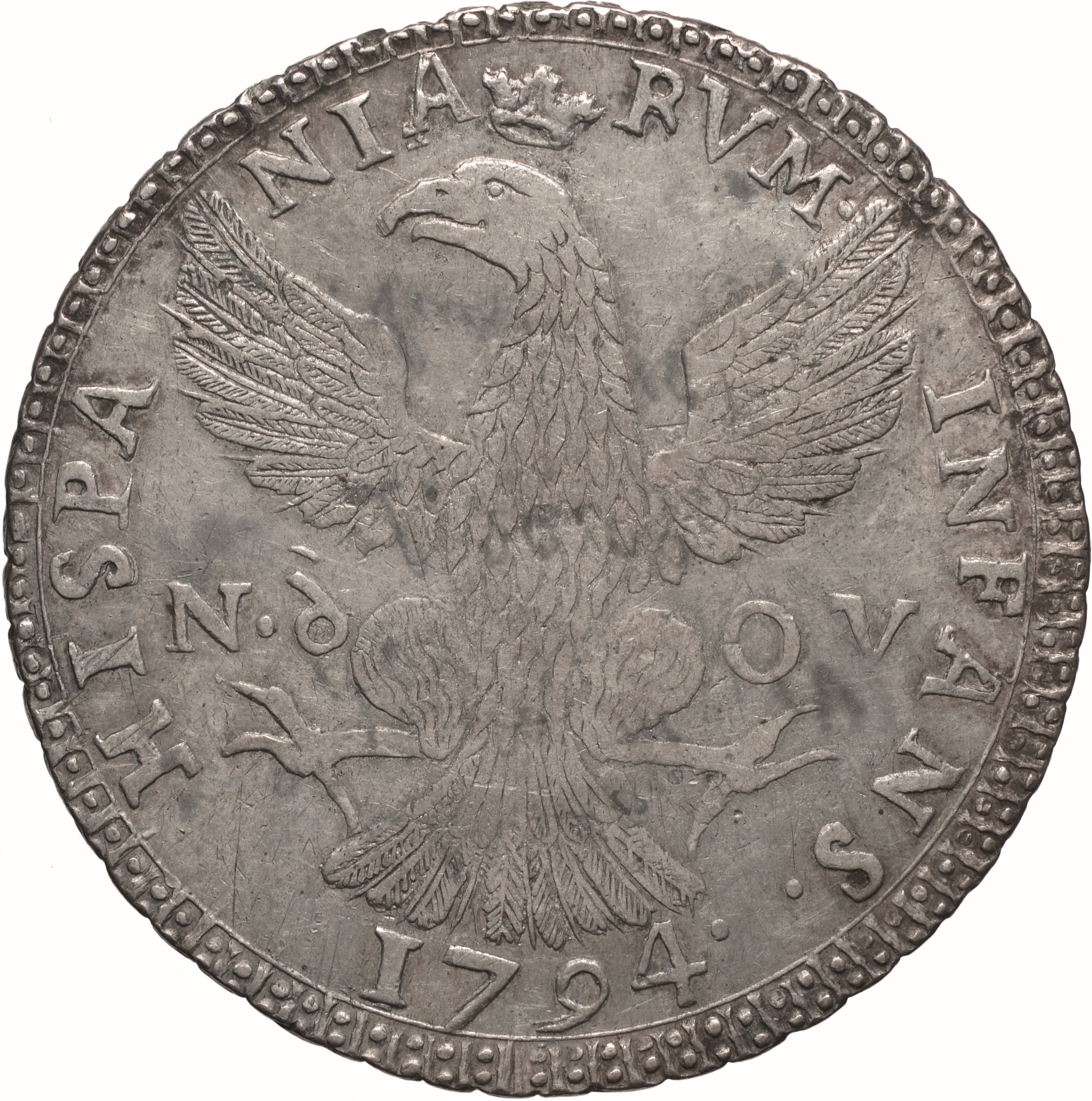 Dritto: Busto corazzato del re volto a d., a testa nuda con lunghi capelli; sotto, T. 12. . Campo monetale delimitato da filetto dentellato. Rovescio: Aquila coronata ad ali spiegate, con testa volta a s.; nel campo, sotto le ali, N. d’ / O V; in basso 1794 ∙. Campo monetale delimitato da filetto dentellato