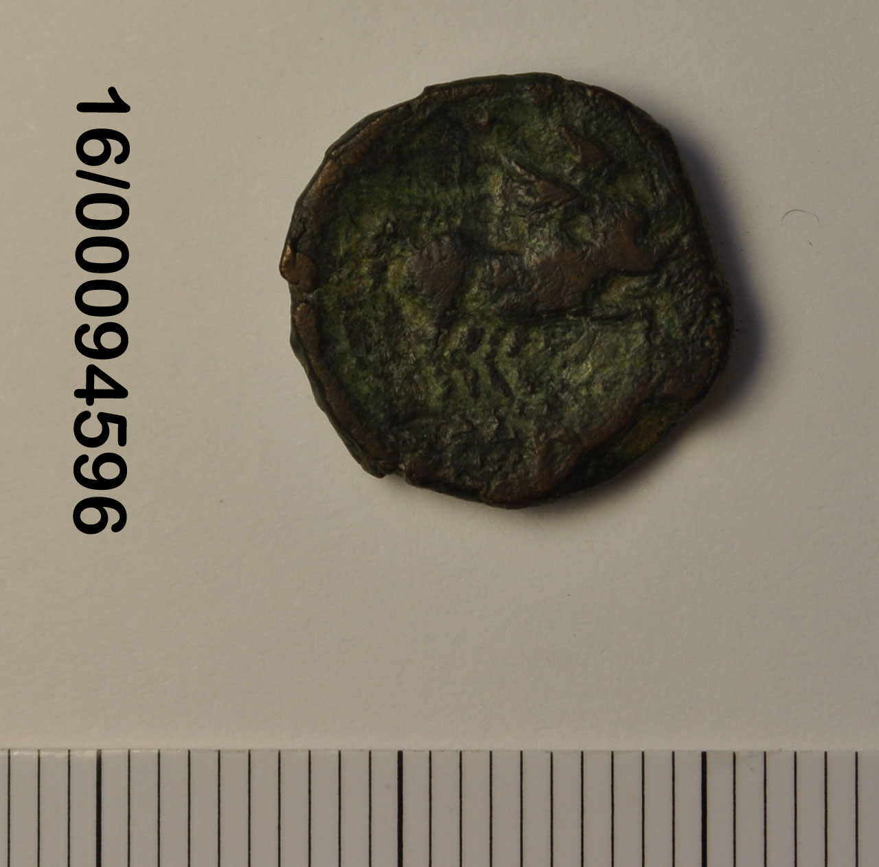 Dritto: illegibile. Rovescio: Due cavalli al galoppo