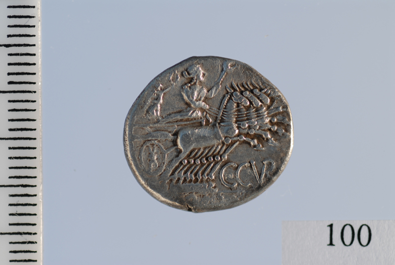 Dritto: Testa Galeata di Roma a d. Rovescio: Giunone su quadriga a d. coronato da Vittoria, con redini nella mano d. scettro nella s