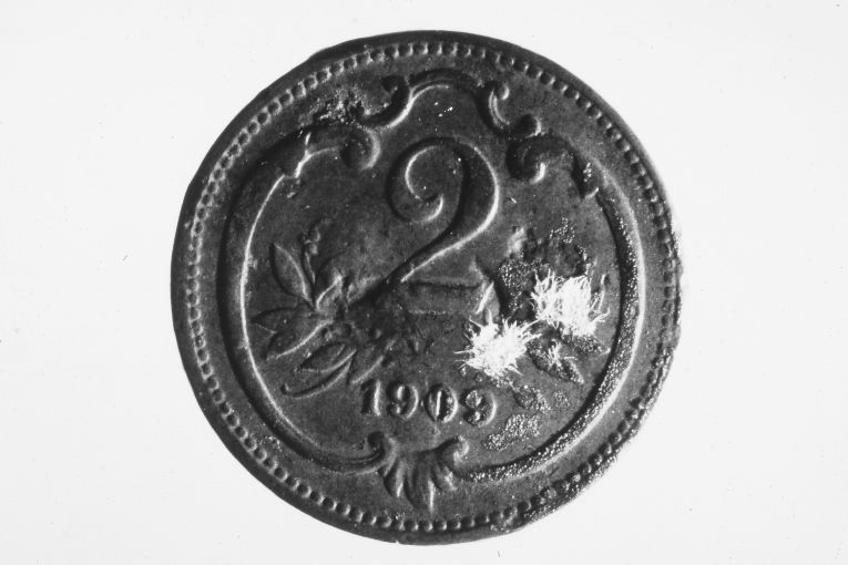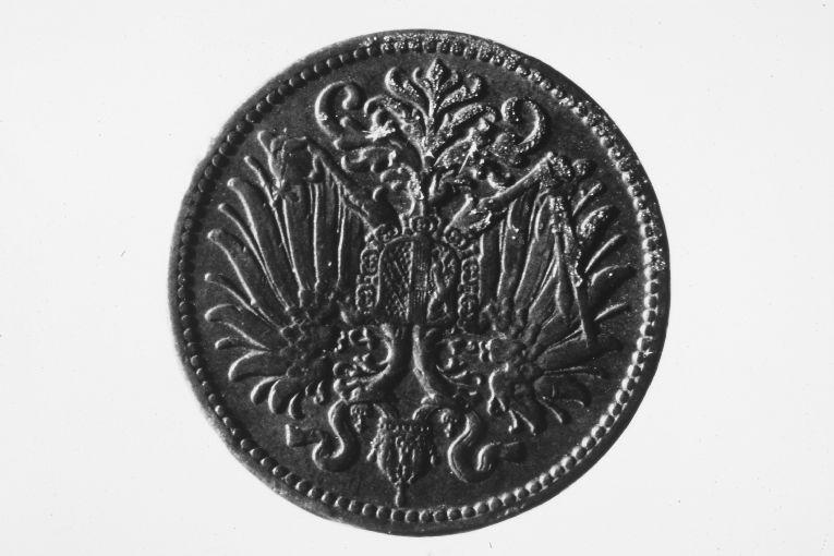 Dritto: arme regale sul recto scudo sannitico su aquila bicipite coronata a volo spiegato: tripartito, al leone rampante nel primo, caricato di scudetto nel secondo, bandato nel terzo. Rovescio: