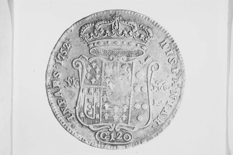 Ritratto di Carlo III, re delle Due Sicilie; arme regale Borbone di Napoli,