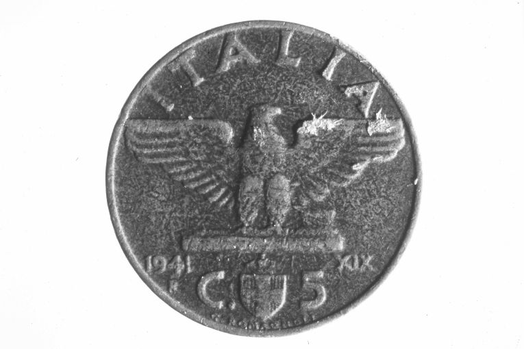 Ritratto di Vittorio Emanuele III re d'Italia, aquila a volo spiegato con fascio littorio, arme Savoia,