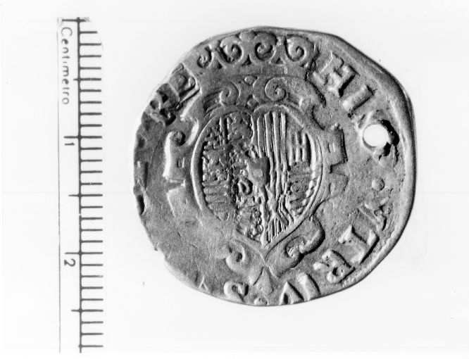 Busto giovanile volto a destra con corona e alto collare; stemma coronato,