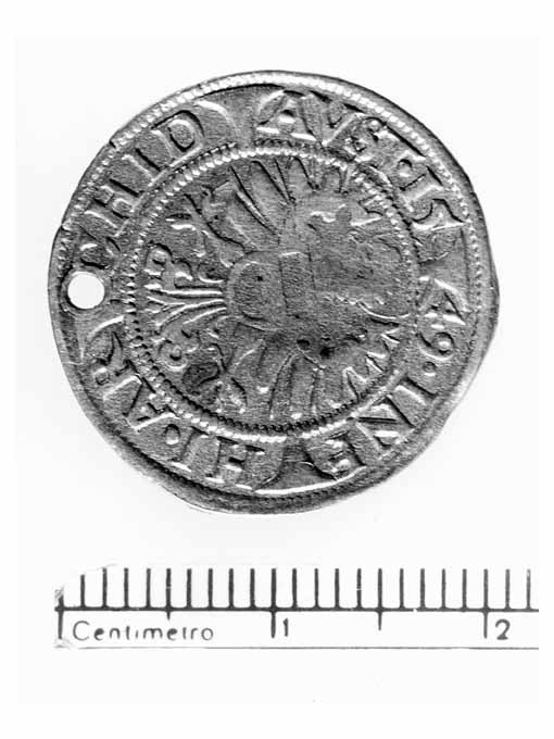 Dritto: arme imperiale sul verso aquila a volo spiegato con scudo sul corpo: di rosso alla fascia bianca. Rovescio: moneta