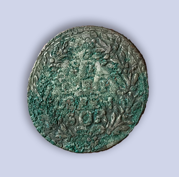 Dritto: Busto del re a testa nuda a d.; bordo perlinato. Rovescio: Corona di alloro legata in basso; bordo perlinato