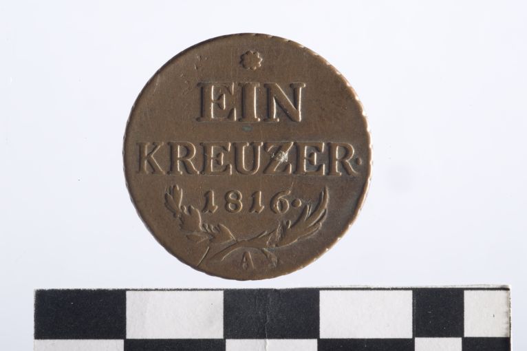 Dritto: Stemma coronato; nello scudo aquila bicipite. Rovescio: Stella a otto punte, in alto; rami in basso