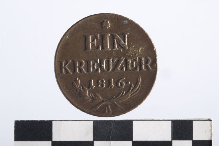 Dritto: Stemma coronato; nello scudo aquila bicipite. Rovescio: Stella a otto punte, in alto; rami in basso