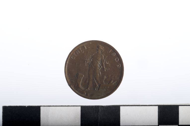 Dritto: Testa di Vittorio Emanuele III, a s. Rovescio: Figura allegorica femminile simboleggiante l'Italia su di una nave con unramoscello di ulivo nella mano destra