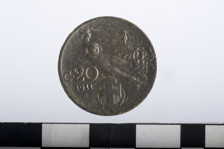 Dritto: Testa di giovane a s., con spiga. Rovescio: Libertà librata, a s.; in basso stemma sabaudo; BISTOLFI M., a s.; L. GIORGI INC., a d