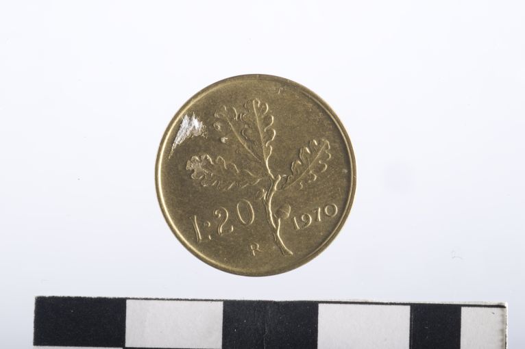 Dritto: Testa femminile (Cerere) ornata da spighe a s.; lungo il bordo, legenda; in basso, nome dell'autore. Rovescio: Ramo di quercia con 4 foglie e una ghianda; nel campo a s.: valore e segno di zecca su due righe; nel campo a destra: data