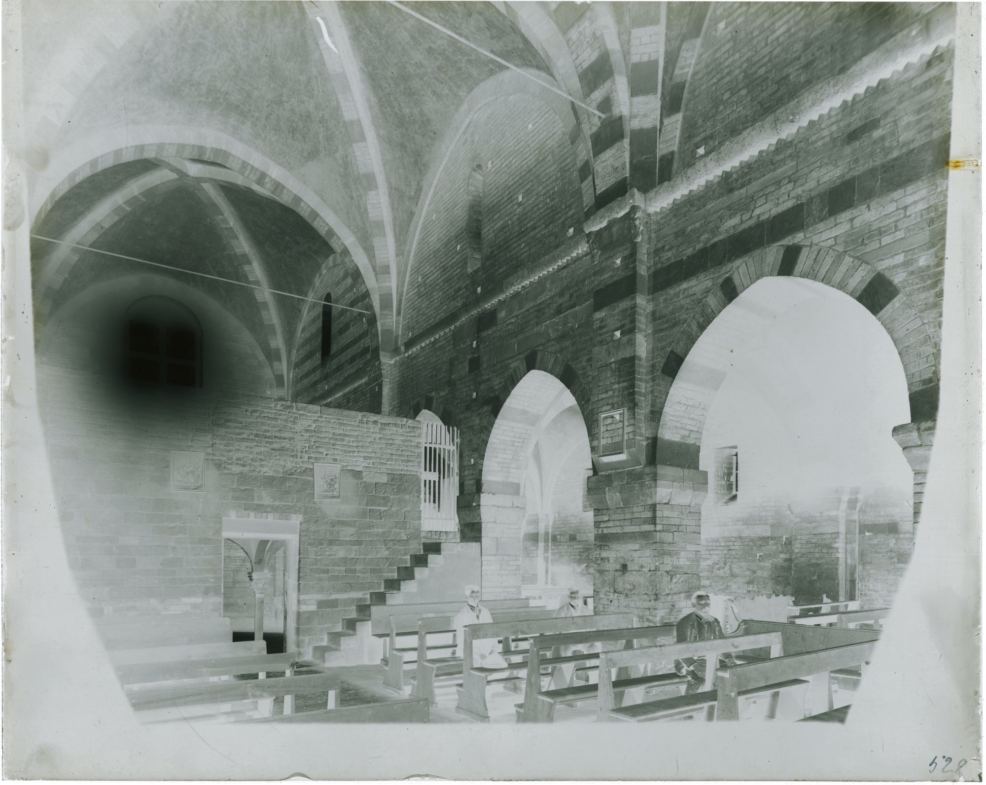 Albugnano (AT) (Vezzolano) - Abbazia S. Maria di Vezzolano - Chiesa - interno del jubè - dopo i restauri del 1895 AT - Albugnano - Canonica di Santa Maria di Vezzolano - chiesa - interno: vista di scorcio verso il prospetto posteriore del pontile, dopo i lavori di restauro