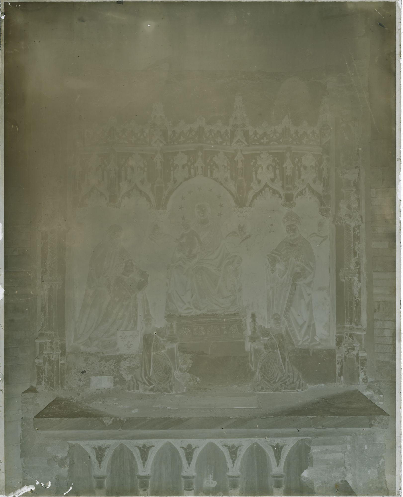 Albugnano (AT) (Vezzolano) - Abbazia di S. Maria di Vezzolano - chiesa - altare maggiore - gruppo in terracotta AT - Albugnano - Canonica di Santa Maria di Vezzolano - interno: Autore non identificato, Madonna col Bambino, Santi e Carlo VIII, s.d., gruppo in terracotta policroma sull'altare maggiore con due angeli posti al centro
