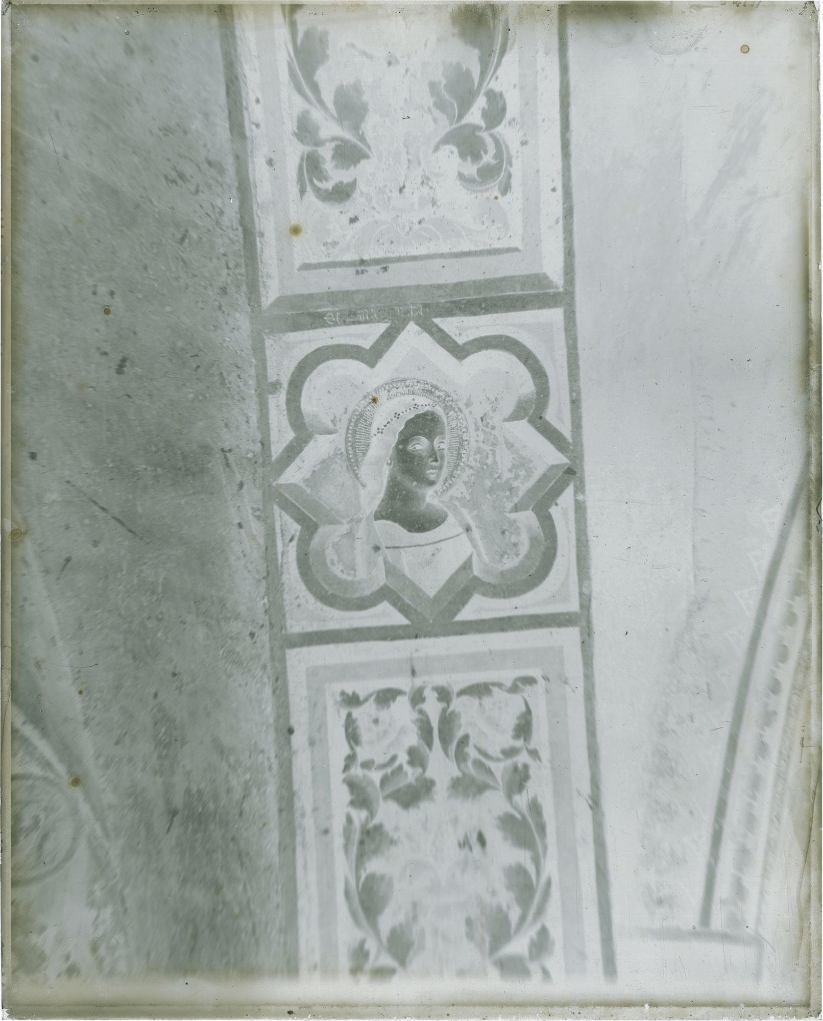 Albugnano (AT) (Vezzolano) - S. Maria di Vezzolano - Santa - affresco AT - Albugnano - Canonica di Santa Maria di Vezzolano - chiostro - braccio settentrionale: Maestro di Montiglio, Santa Margherita, 1354, affresco nel sottarco sottarco tra la seconda e la terza campata