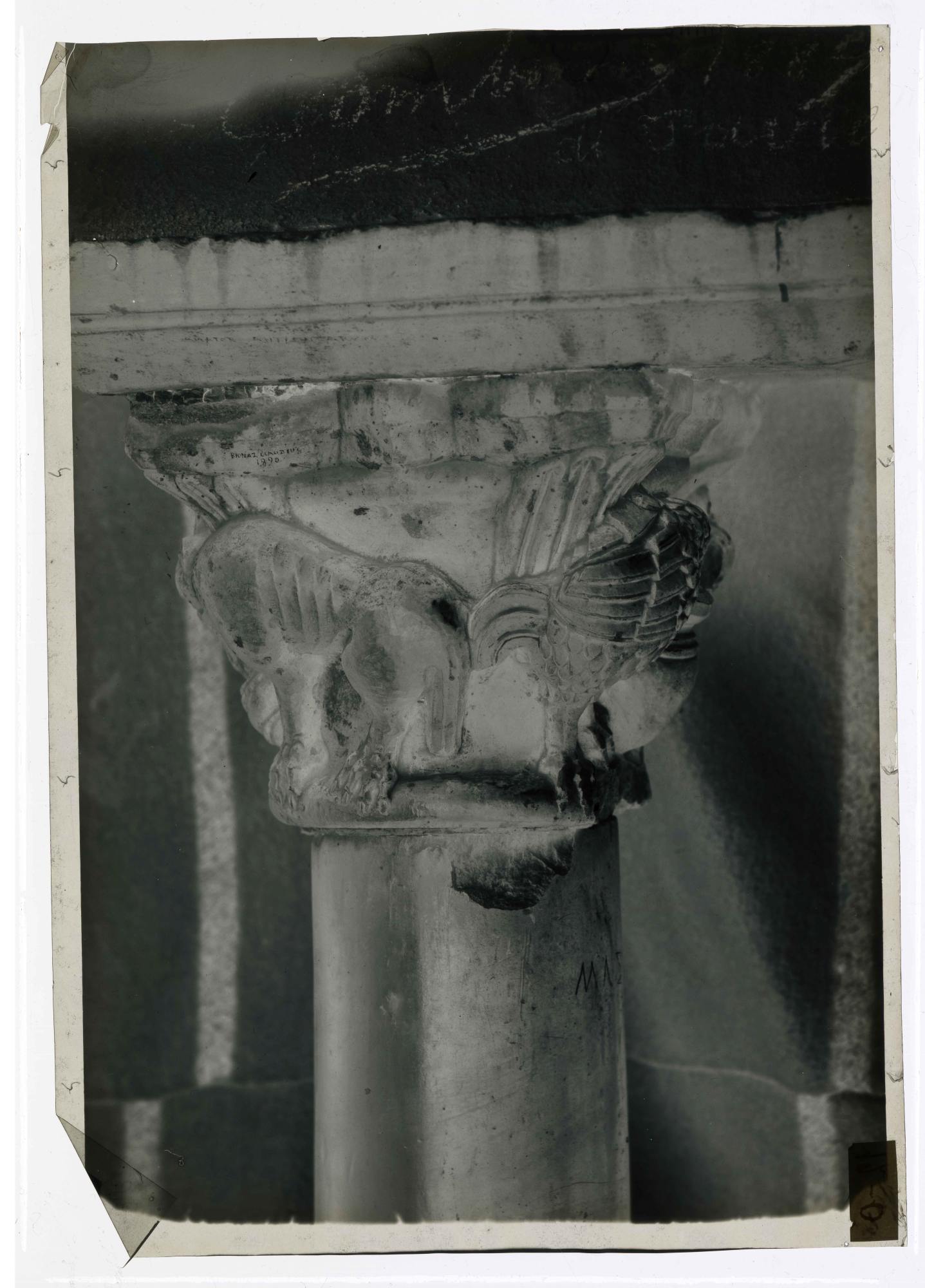 Aosta (AO)/ Sant'Orso = chiostro =/ capitello 12° = lato ovest AO - Aosta - Collegiata dei Santi Pietro e Orso - Chiostro - Capitello n. 12 - prospetto ovest: Favola della cicogna e della volpe