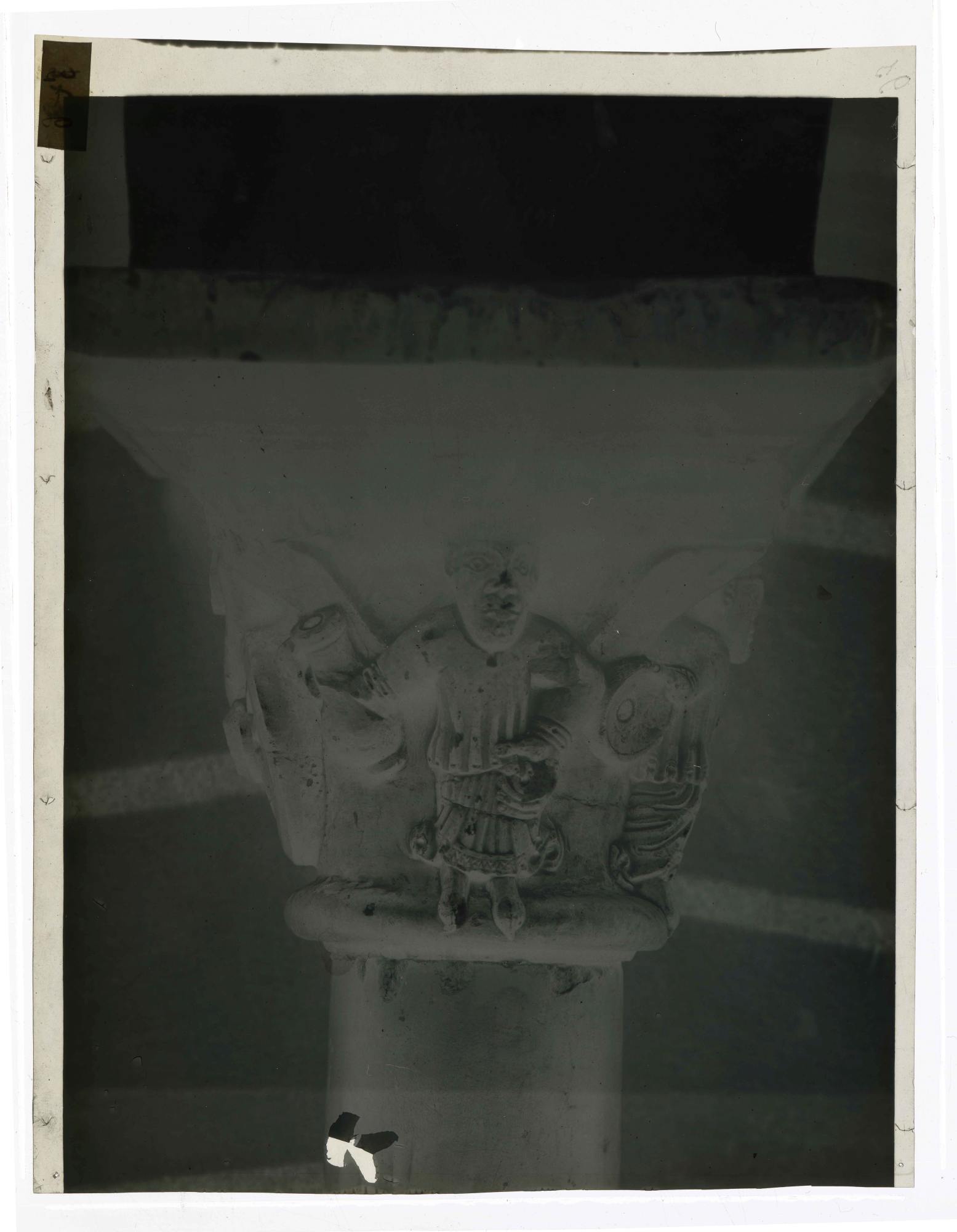 Aosta (AO)/ Sant'Orso = chiostro =/ capitello 9° = lato sud AO - Aosta - Collegiata dei Santi Pietro e Orso - Chiostro - Capitello n. 09 - prospetto sud con scena di vita monastica