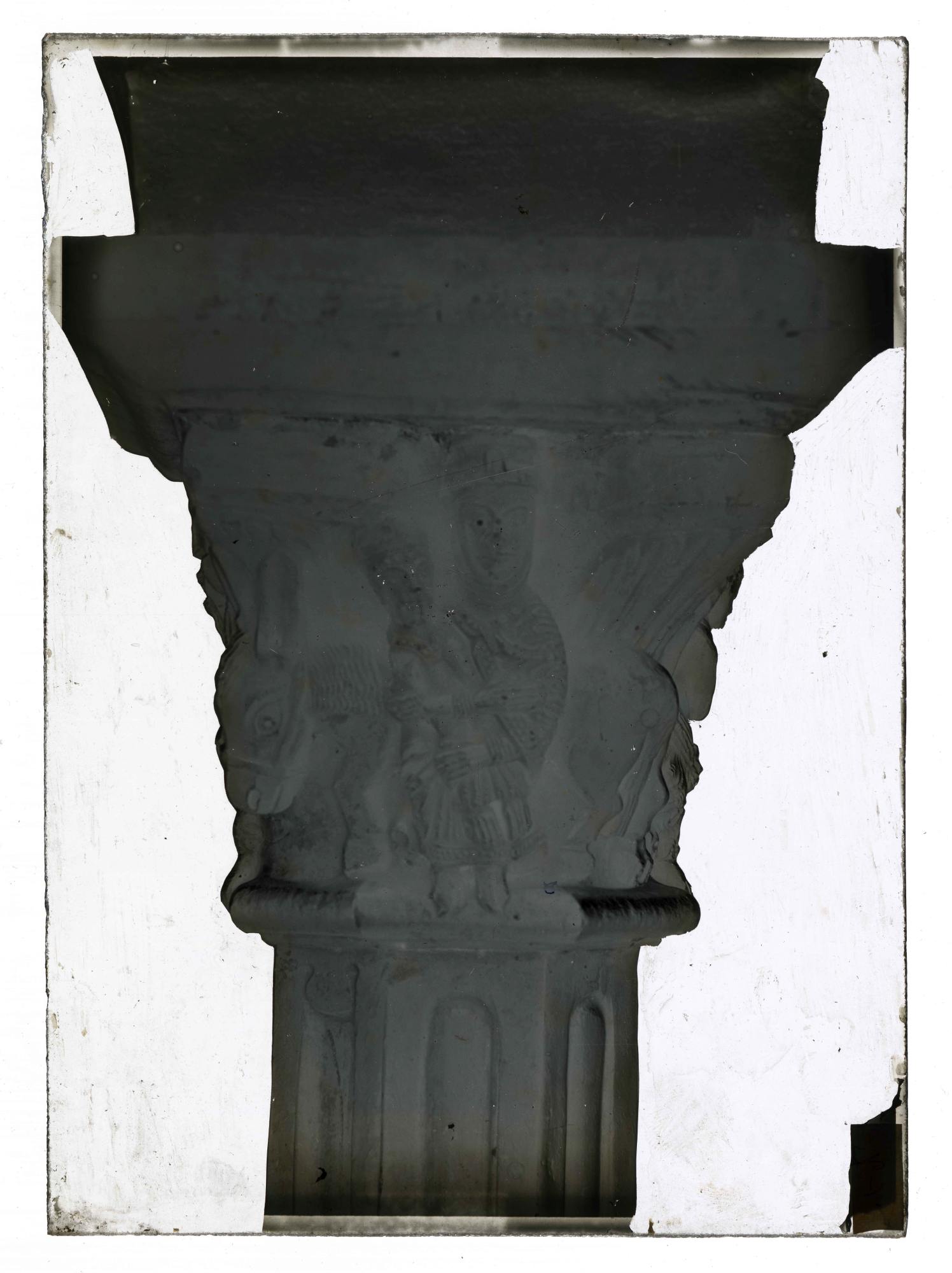 Aosta (AO)/ Sant'Orso = chiostro/ 6° capitello = lato nord AO - Aosta - Collegiata dei Santi Pietro e Orso - Chiostro - Capitello n. 06 - prospetto nord: Fuga in Egitto, figura della Madonna col Bambino e l'asino