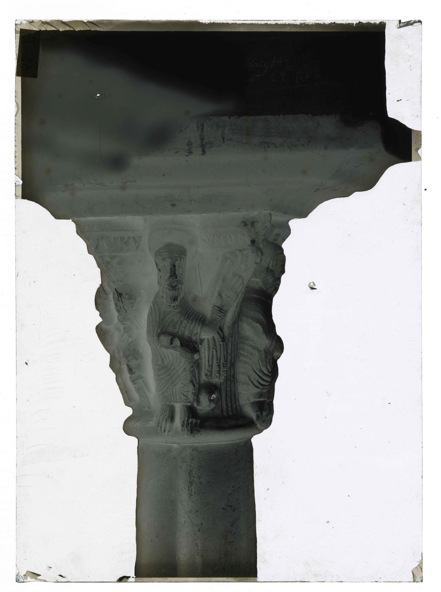 Aosta (AO)/ Sant'Orso = chiostro/ capitello n. 33 = lato est AO - Aosta - Collegiata dei Santi Pietro e Orso - Chiostro - Capitello n. 33 - prospetto ovest: San Simone
