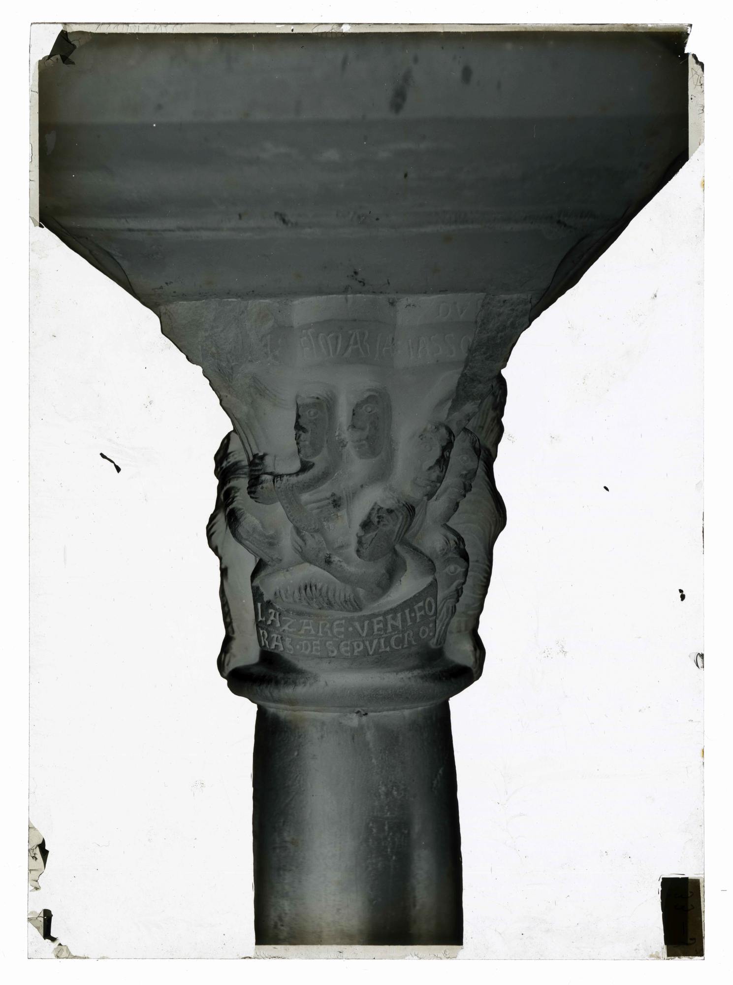 Aosta (AO)/ Sant'Orso = chiostro/ capitello 33° = lato ovest AO - Aosta - Collegiata dei Santi Pietro e Orso - Chiostro - Capitello n. 33 - prospetto nord: Resurrezione di Lazzaro